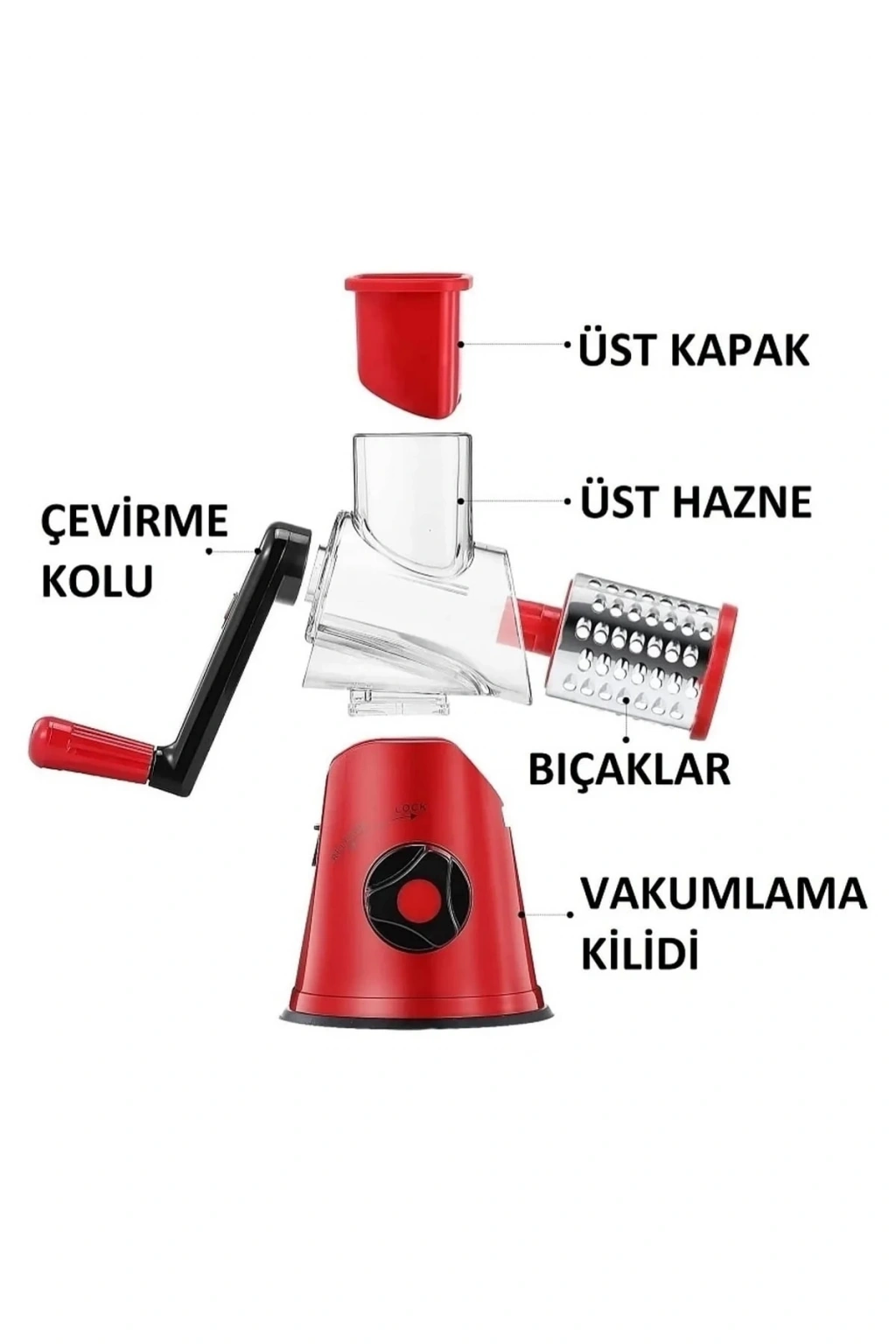 3 Bıçaklı Kollu Çevirmeli Mutfak Değirmeni Sebze Meyve Dilimleyici Doğrayıcı Öğütücü Lüks Rende