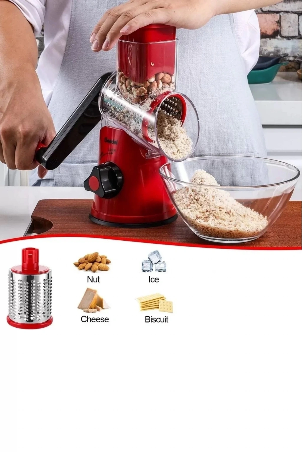 3 Bıçaklı Kollu Sebze Doğrayıcı Dilimleyici Mutfak Tambur Peynir Fındık Ceviz Öğütücü Rende Seti
