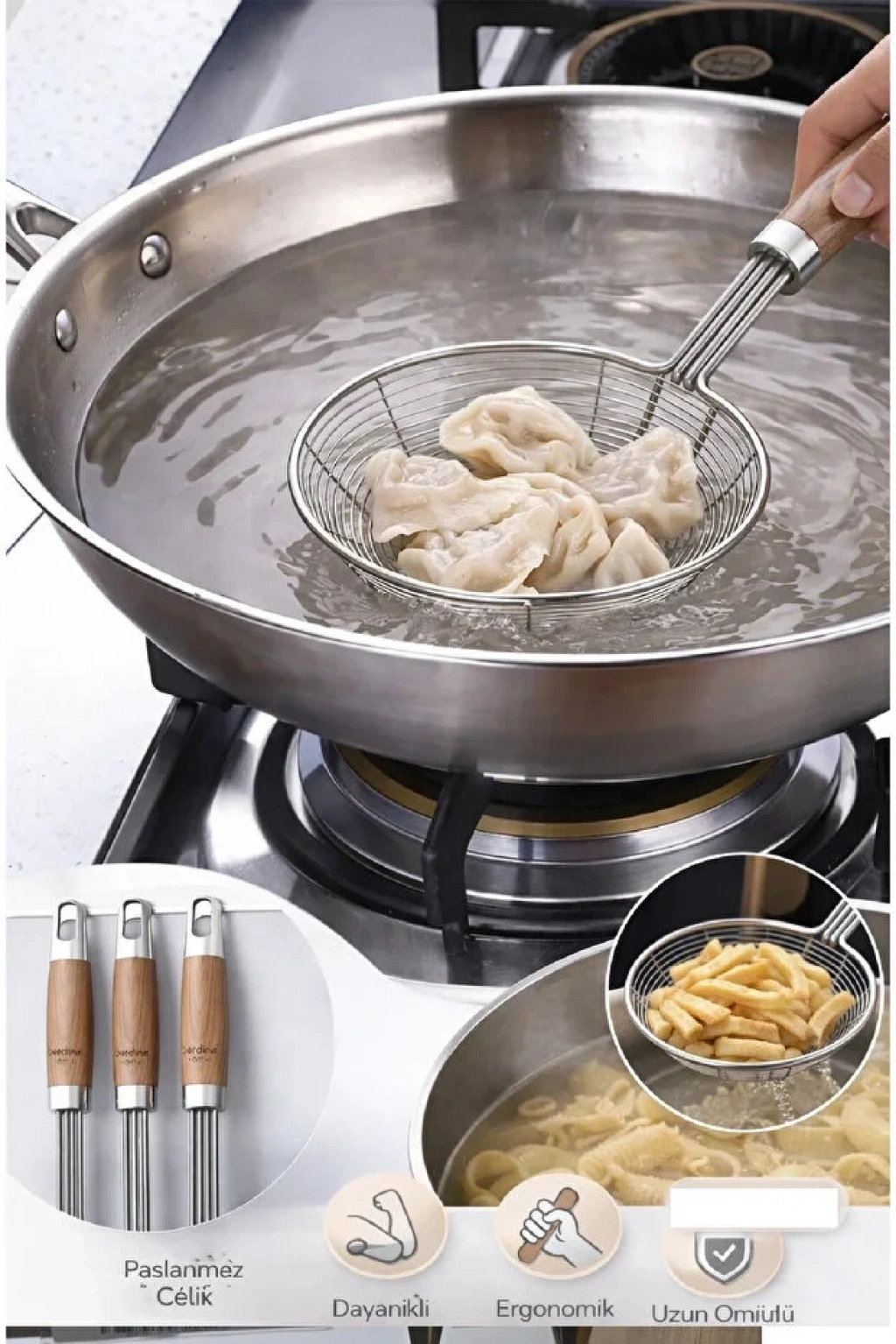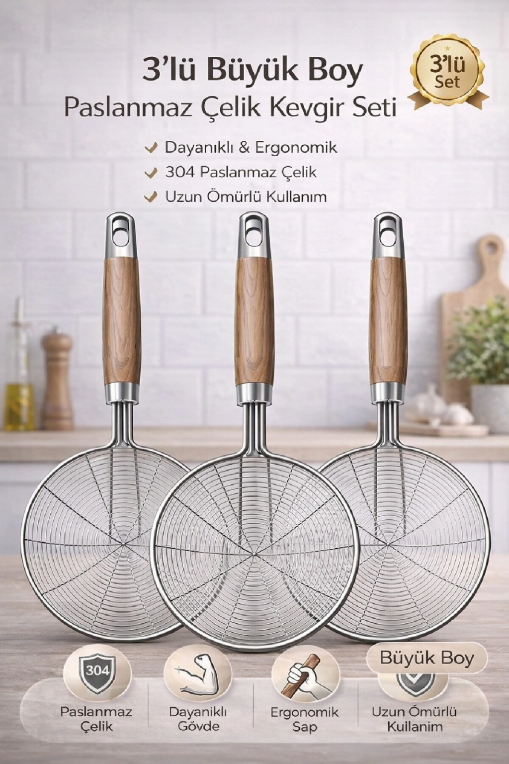 • 3 adet Büyük boy tel kevgir seti