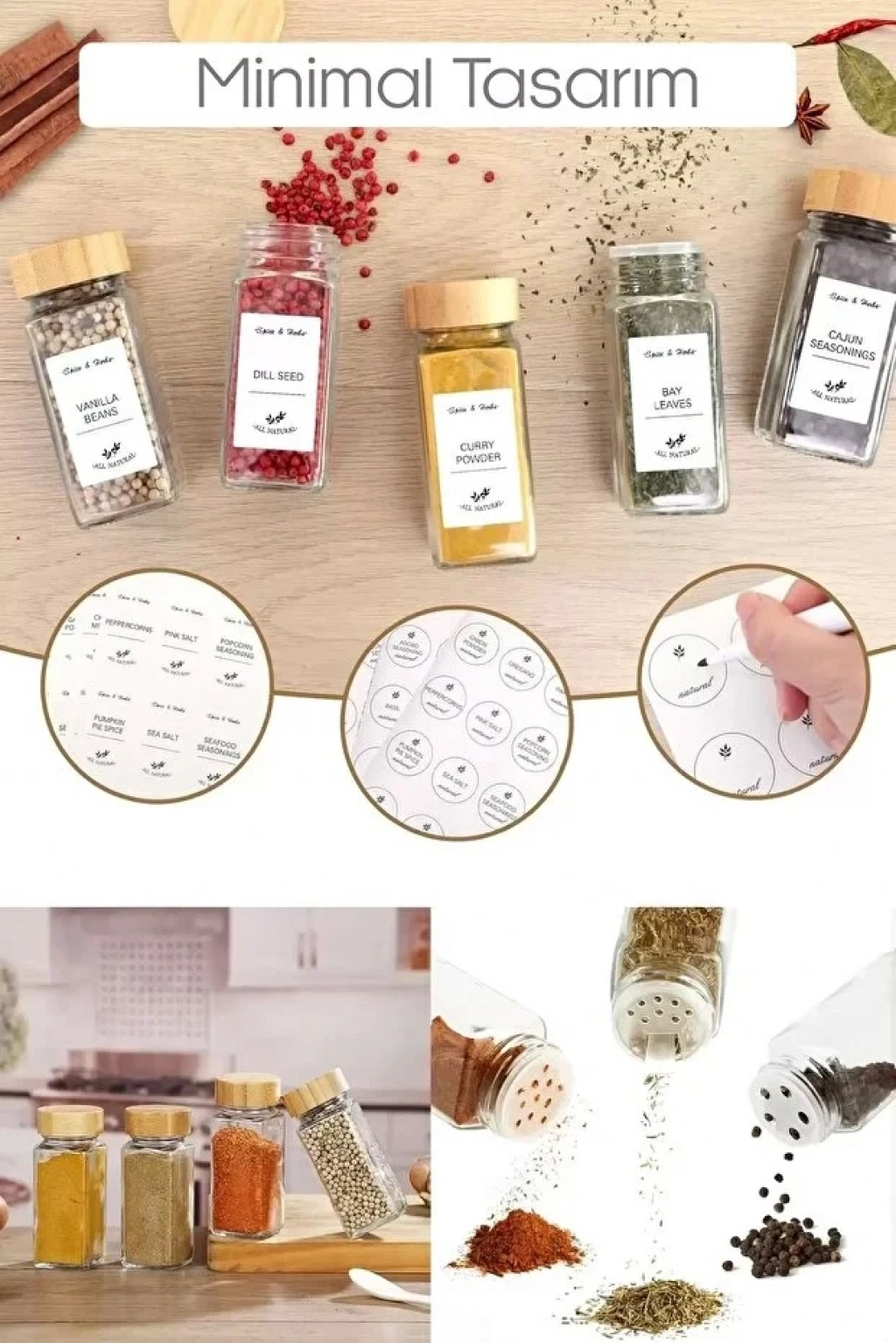 Paket İçeriği: 4’lü Bambu Kapaklı Etiketli Cam Kare Formlu Baharatlık + Etiket + Bambu Stant Bulunmaktadır.