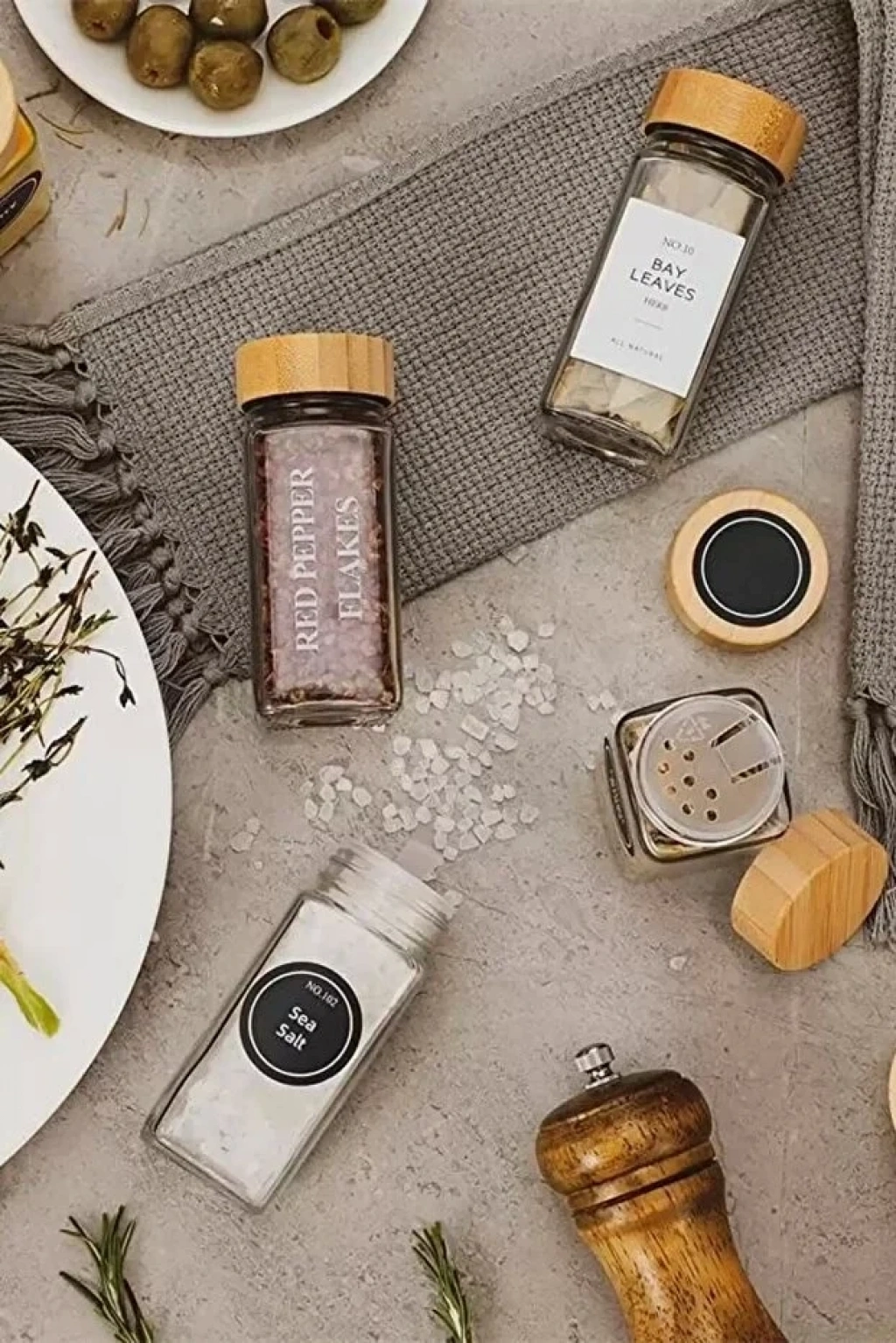 Bambu kapaklı bu kare baharat kavanozları, çekmeceleri düzenlemek, baharat, biber, tuz ve ev yapımı eşyaları saklamak için mükemmeldir.