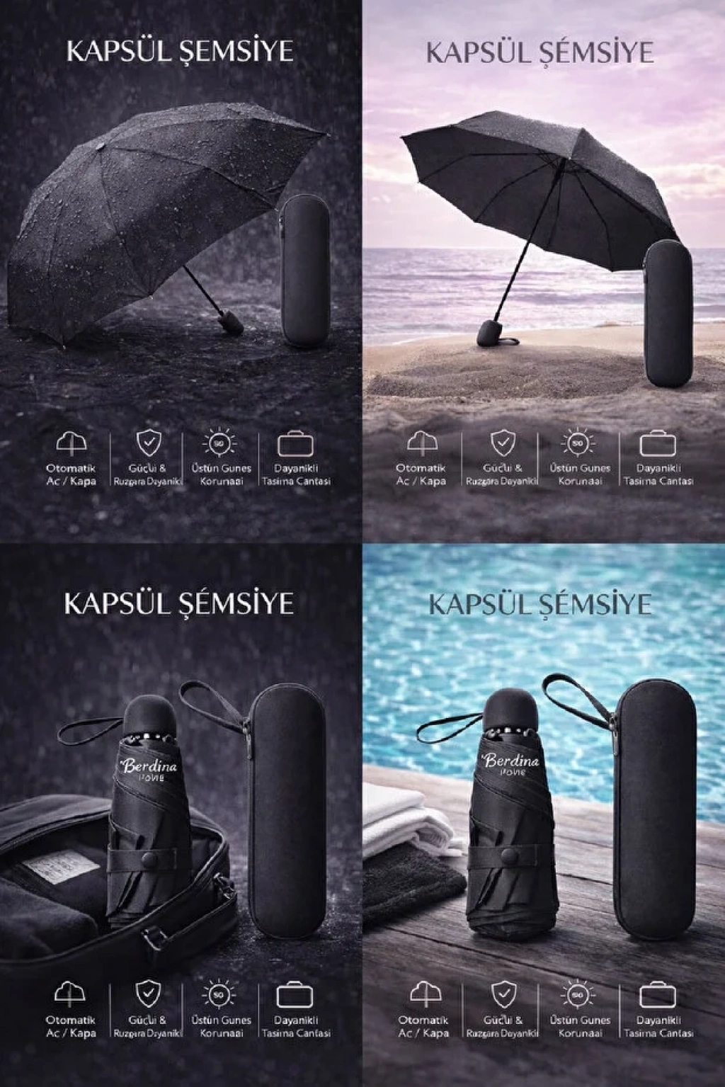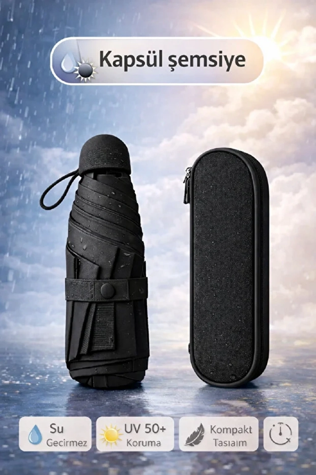 Günlük kullanımda maksimum konfor ve koruma sunan Kapsül Şemsiye, kompakt tasarımı ve güçlü yapısıyla her an yanınızda! Yağmurdan, rüzgârdan ve güneşten tam koruma sağlar; çantanızda yer kaplamaz.