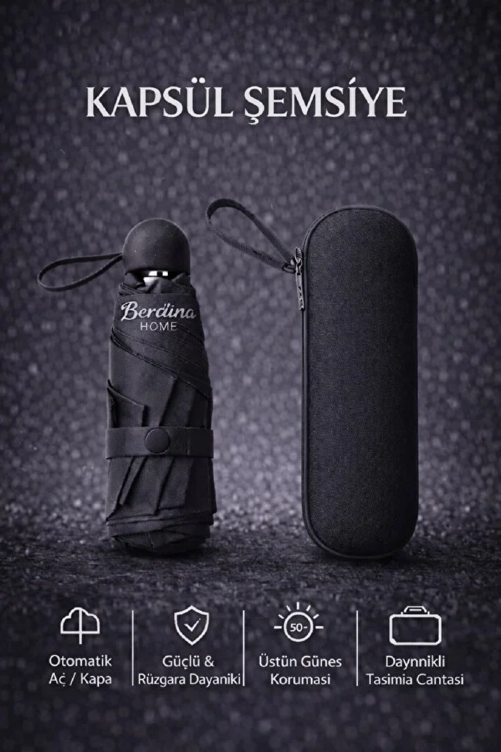 Şemsiye Kapsül Otomatik Aç Kapa Rüzgara Dayanıklı Taşıma Kılıflı Mini Çanta Boy Şemsiye